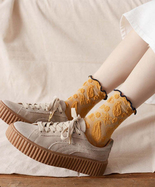 Art Jacquard Cute Ruffled Cotton Mid Calf Socks
