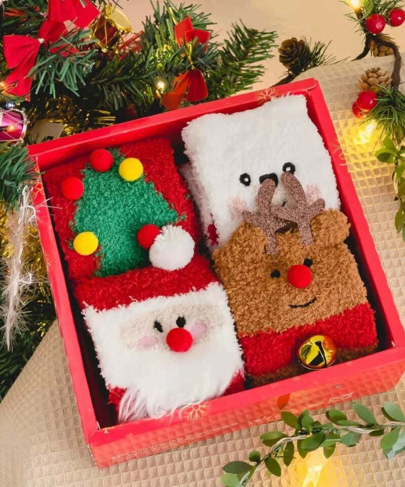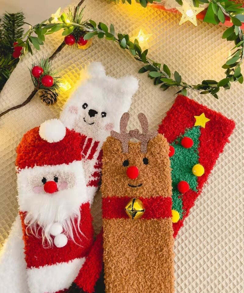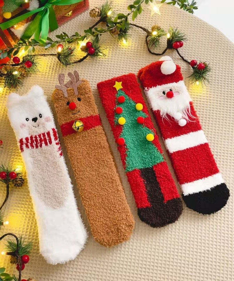 Art Jacquard Christmas Theme Thick Velour Crew Socks