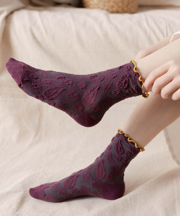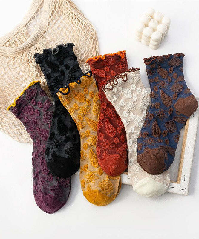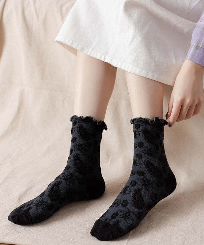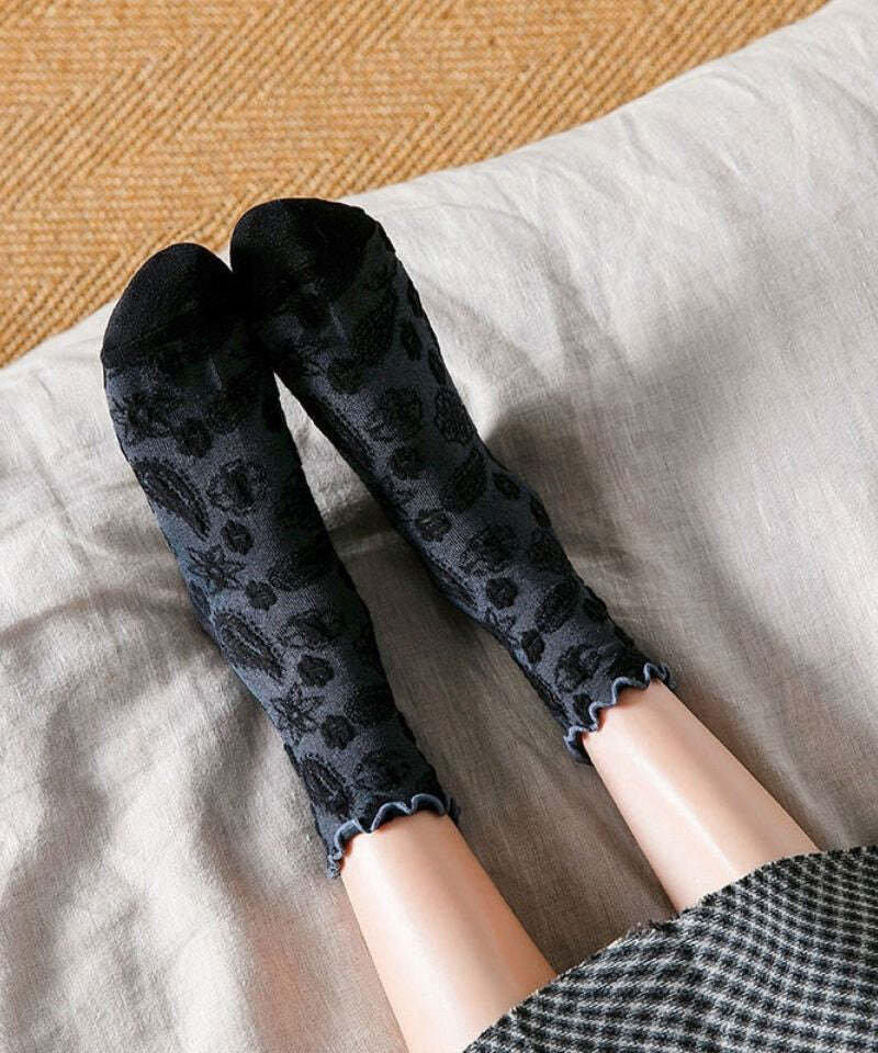 Art Jacquard Cute Ruffled Cotton Mid Calf Socks