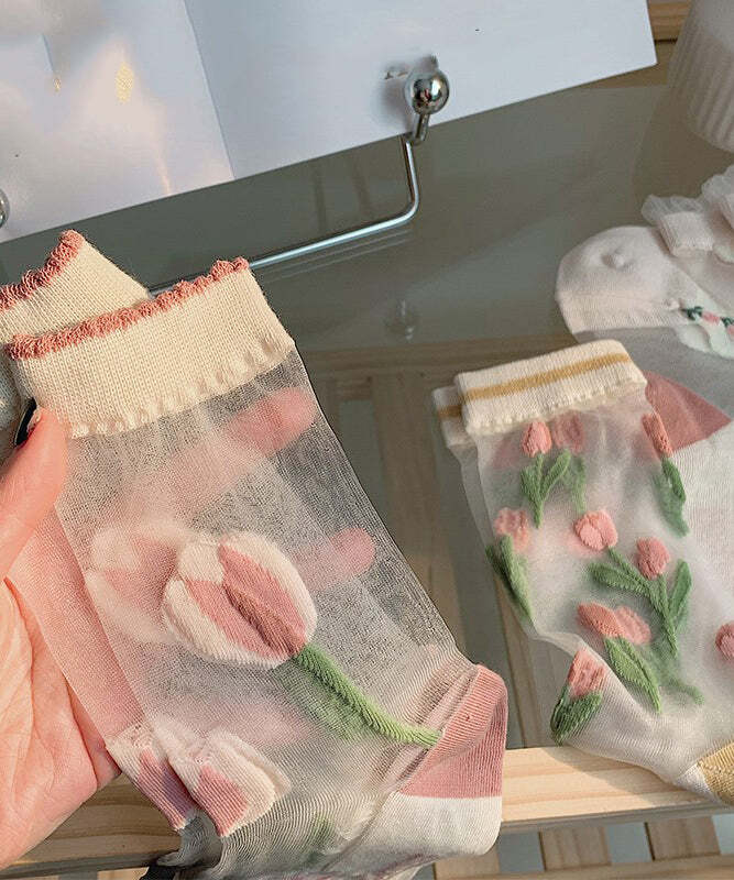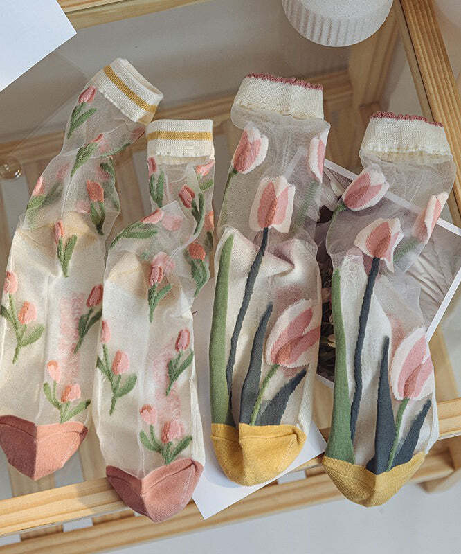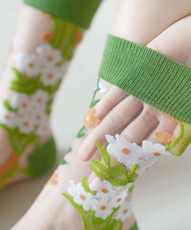 Chic Green Patchwork Sheer Mesh Ankle Socks