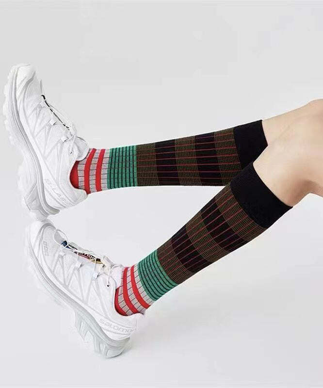 Classic Striped Contrasting Color Cotton Over The Calf Socks