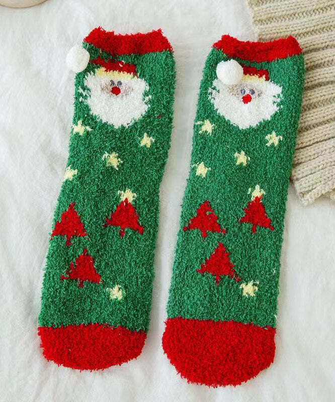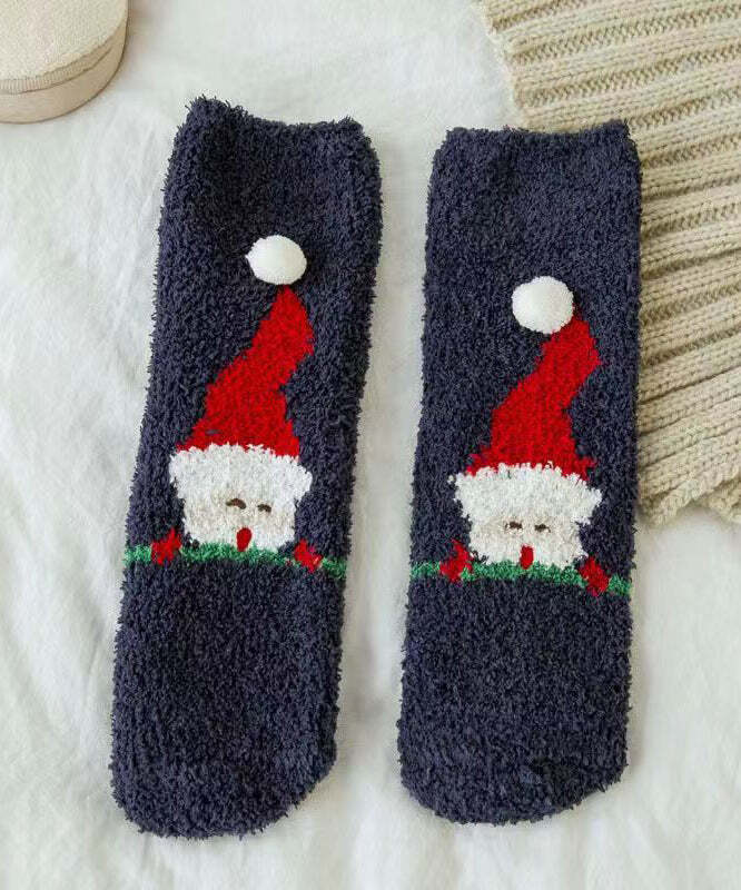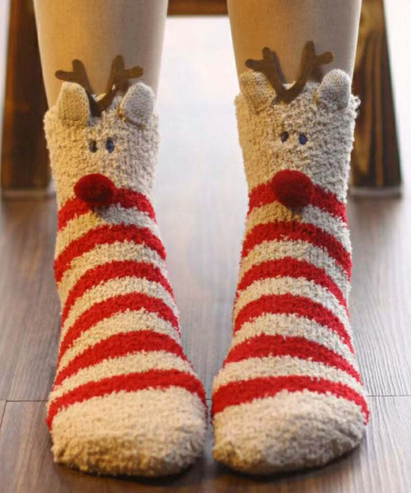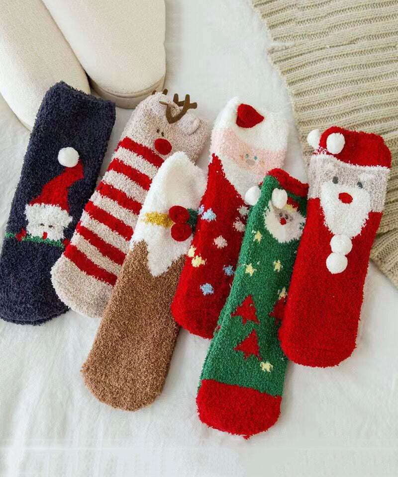 Coral Plush Mid Calf Socks Winter Cute Cartoon Christmas