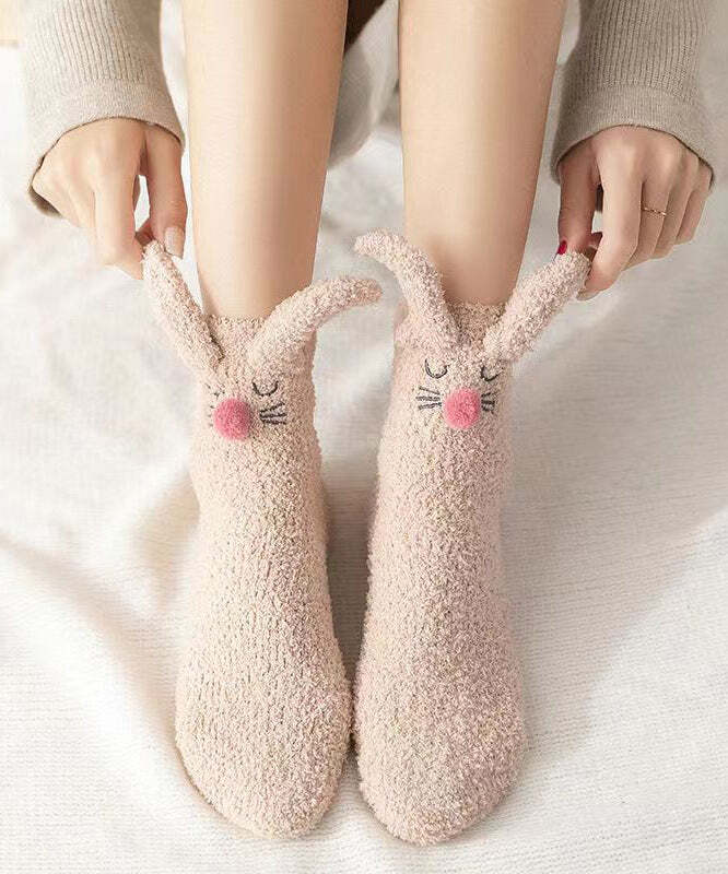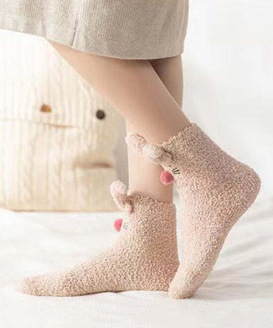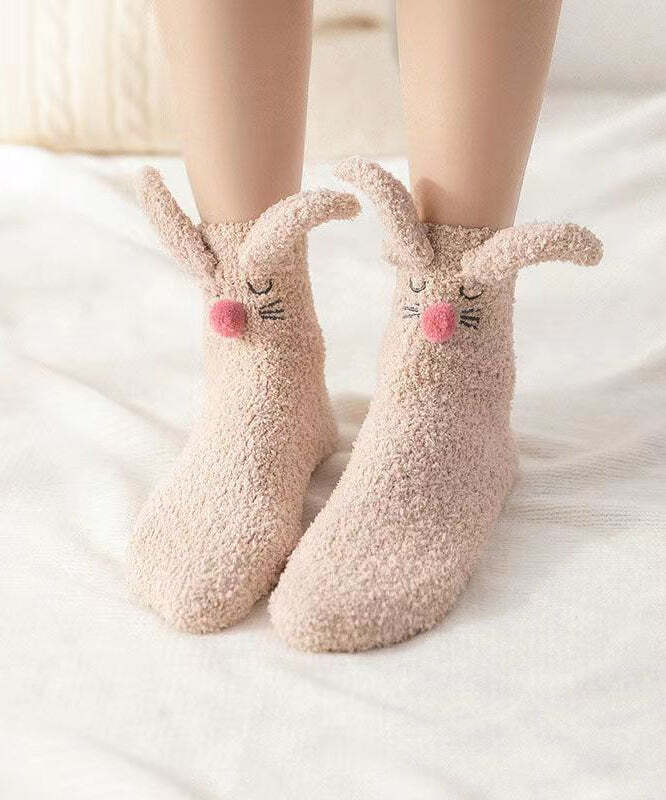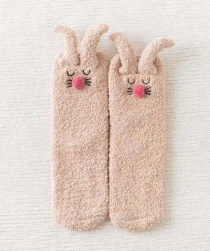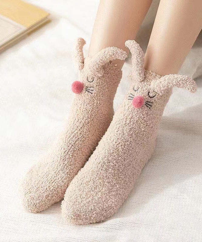 Coral Velvet Khaki Mid Length Socks Keep Warm And Cute In Winter