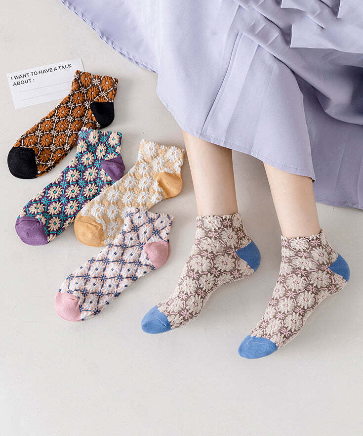 Style Floral Jacquard Women Cotton Low Cut Socks