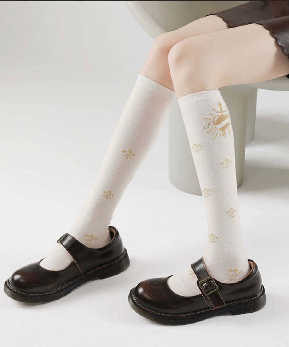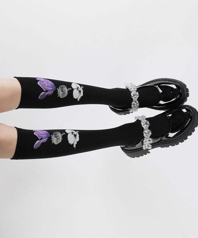 Stylish Bow Floral Jacquard Over The Calf Socks