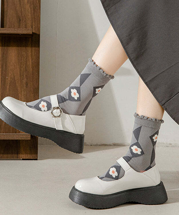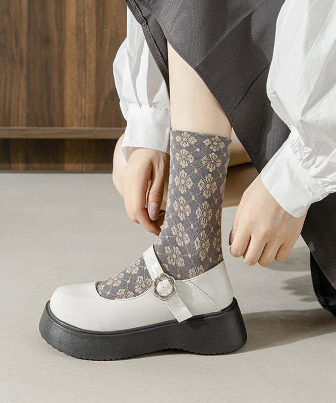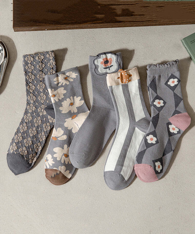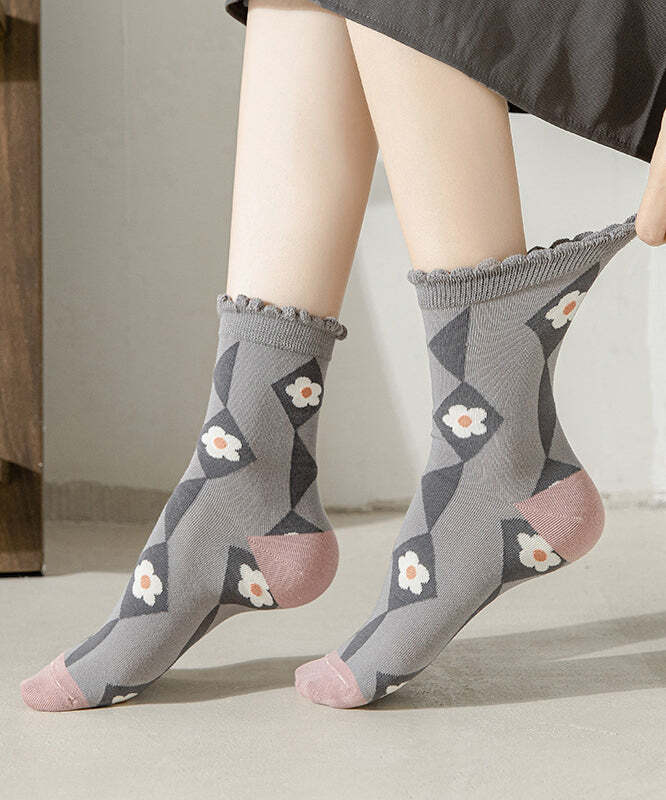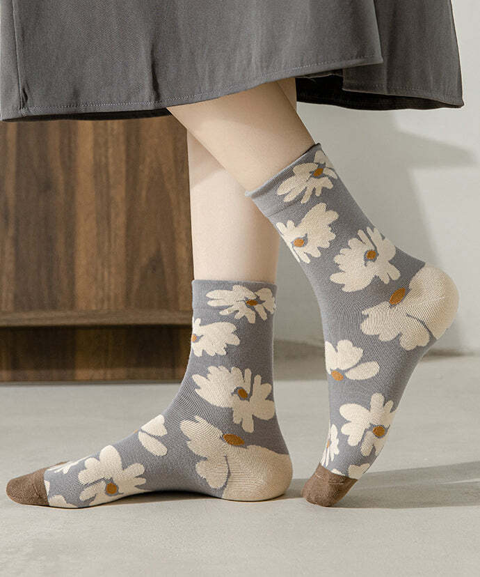 Versatile Autumn Women's Mid Calf Socks Cotton With Fashionable Flowers